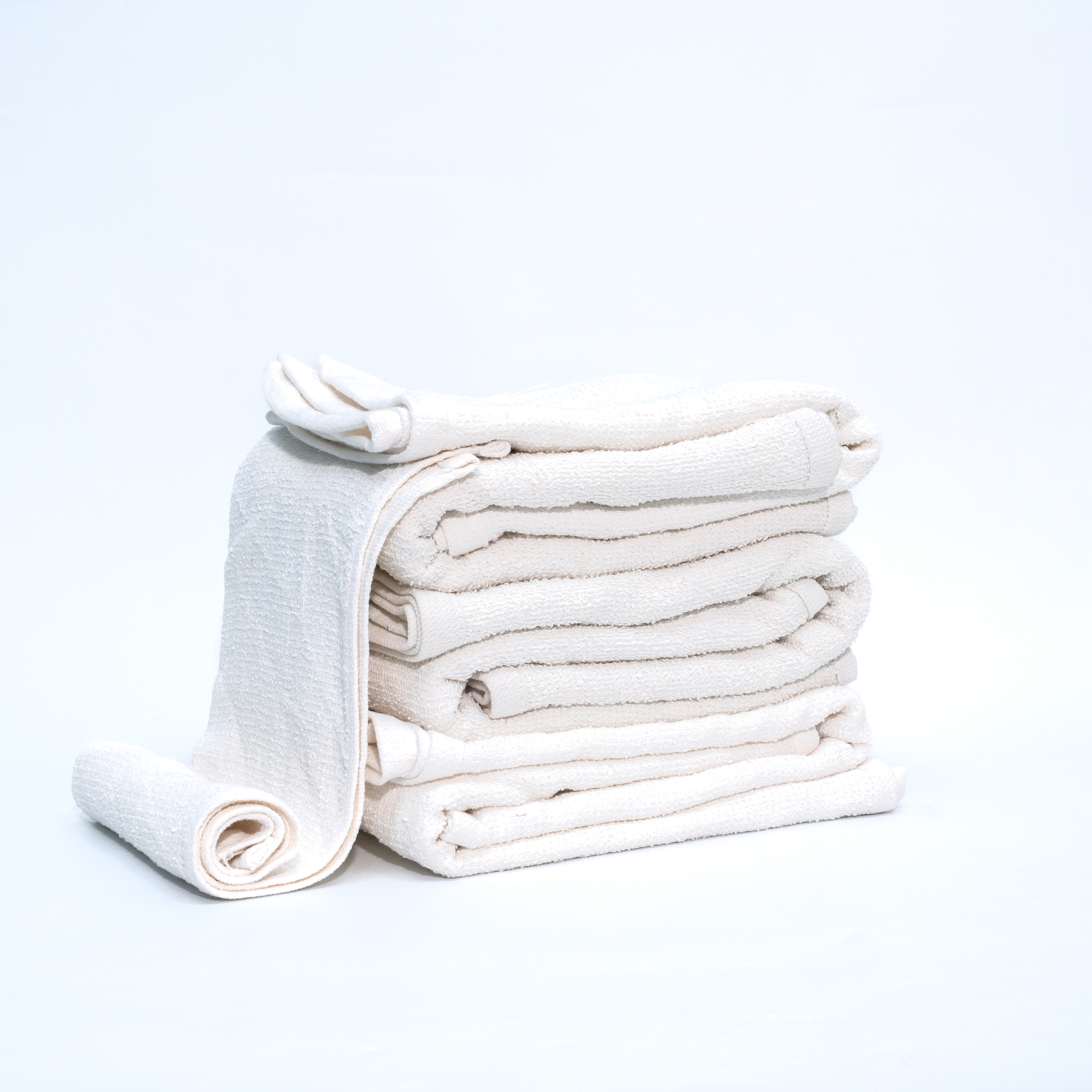 These 14x17 inch white terry barmops are A grade and weigh 22 ounces. They offer excellent absorbency and are ideal for wiping and cleaning surfaces in various settings, including restaurants and bars.