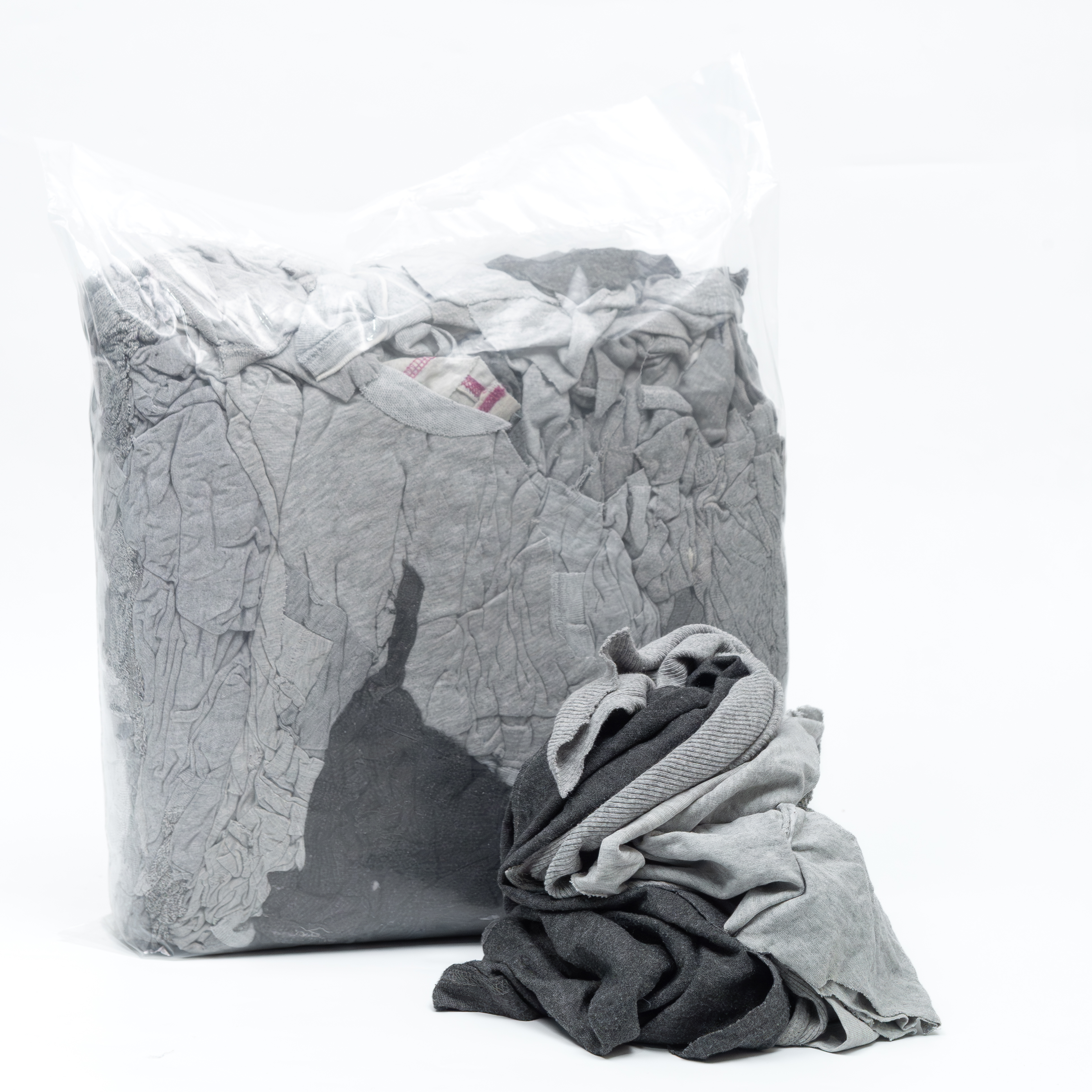 Reclaimed grey knit rags are perfect for industrial cleaning and maintenance. They are durable and highly absorbent, making them suitable for heavy-duty cleaning tasks in workshops, factories, and other industrial settings.